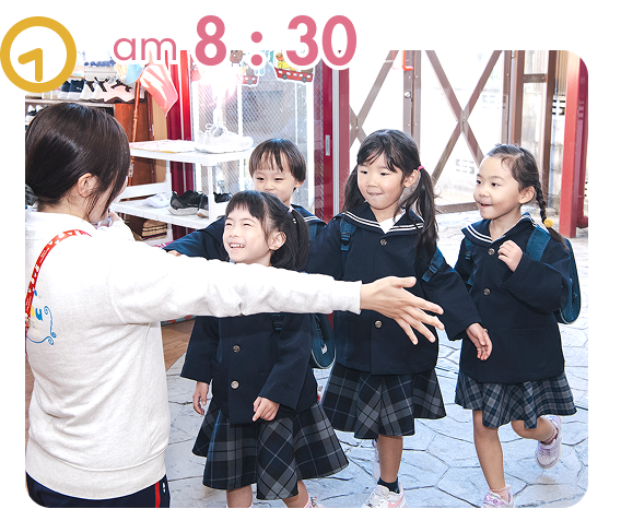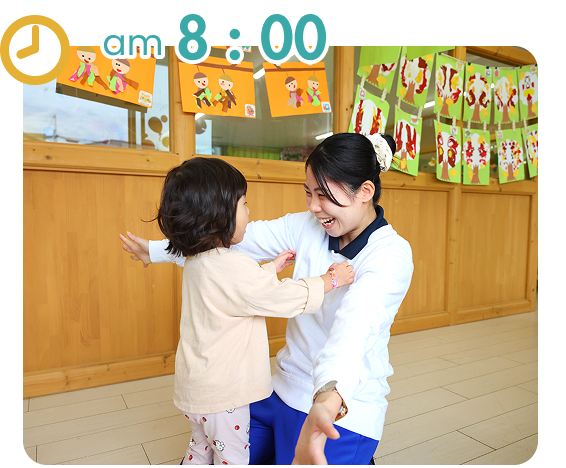 子ども達が元気に登園!「おはようございます!」今日も1日みんなと楽しく遊びましょうね。