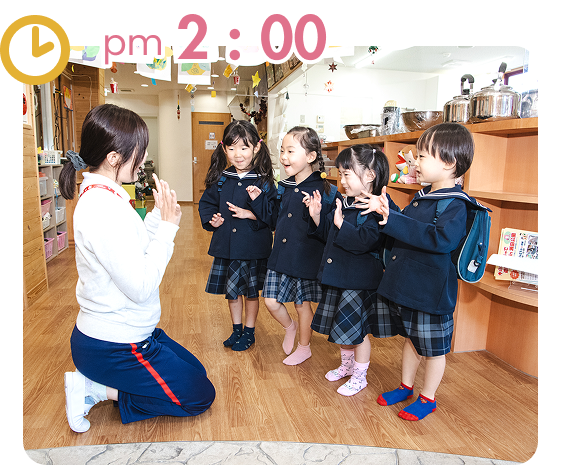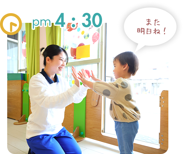 降園の時間お家の方が迎えに来たら帰ります。明日も元気に来てね!