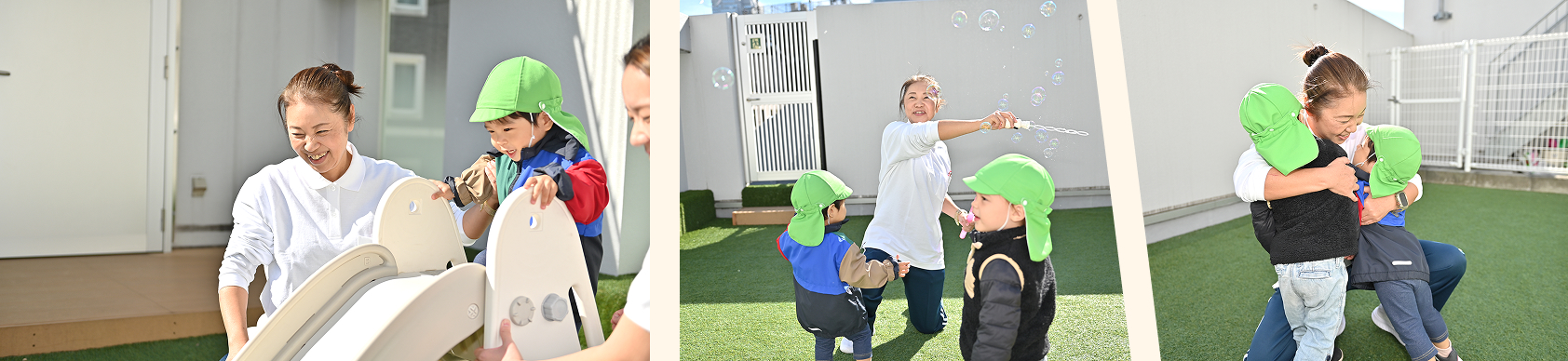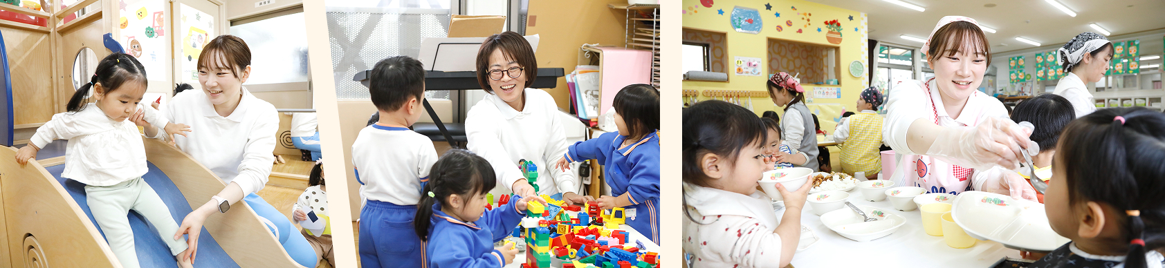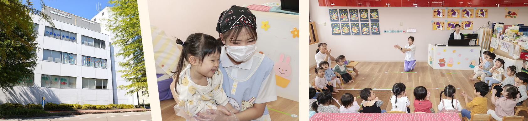 | 0歳児:9名 | 1歳児:15名 | 2歳児:15名 |