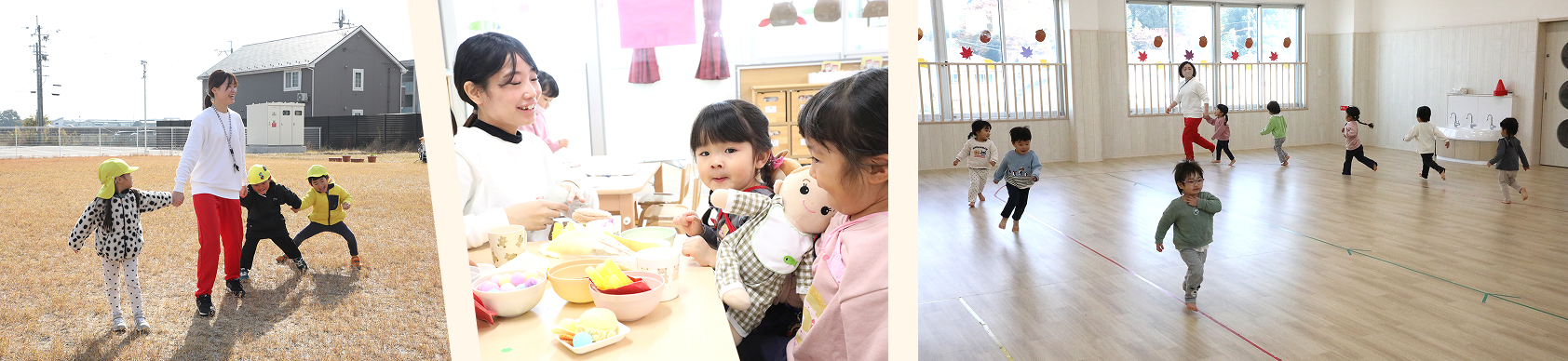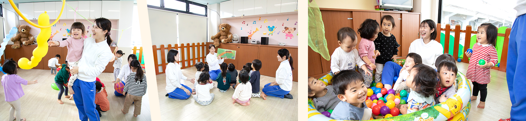 | 0歳児:6名 | 1歳児:15名 | 2歳児:16名 |