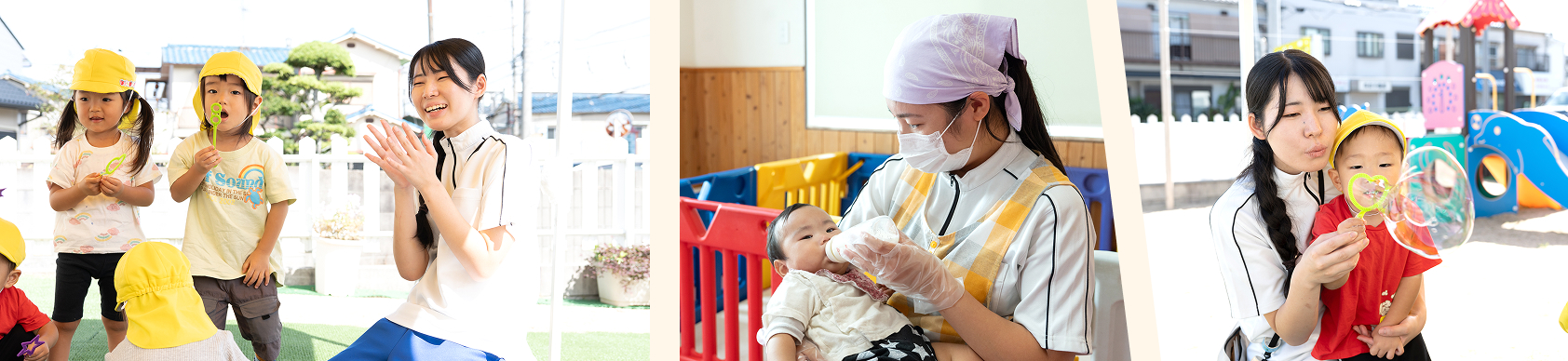 | 0歳児:6名 | 1歳児:6名 | 2歳児:10名 |